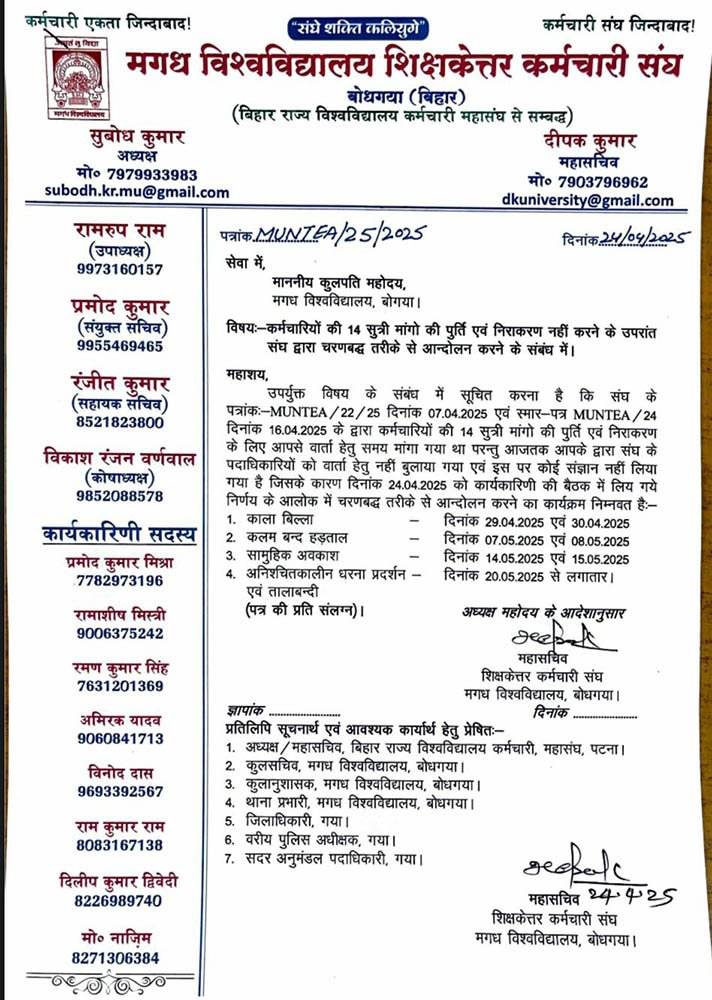 Letter to VC Magadh University Bodh-Gaya Dated: 26-04-2025)Download